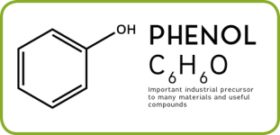 Carbolic acid (C6H6O) also known as phenol, hydroxybenzene (fig. 4). It is also used as an antiseptic and disinfectant (chemical that kills bacteria and fungi) and in medicinal preparations such as mouthwash and sore throat lozenges (BioUltra, for molecular biology, ≥99.5% Sigma-Aldrich).