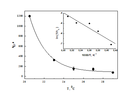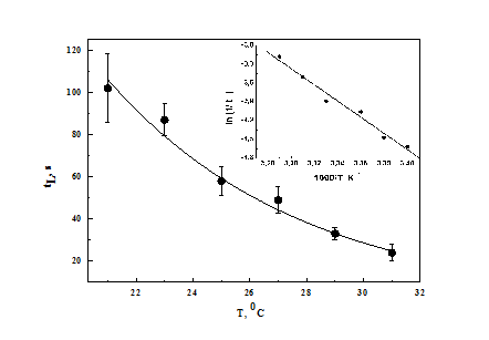 In semilogarithmic coordinates, the tangent of the straight line slope ln(1/tL) =F(1/T) to the abscissa axis is Ea/R (fig. 7) [39, 40].