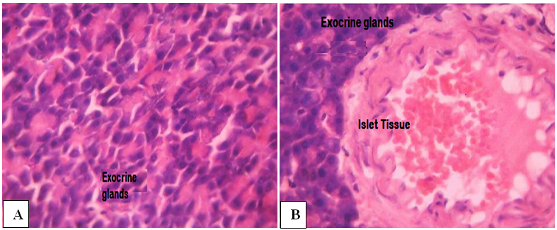 The drugs were administered up to 21 days. The day of randomization and first dose administration was considered as Day 0. Blood was collected from by retro-orbital plexus of eye under light ether anesthesia and fasting blood glucose levels were determined by glucose oxidase method on day 0th, 7th, 14th and 21st day. Body weights were monitored weekly once. On 21st day, all rats were euthanized and blood sample was collected from the retro-orbital plexus into fresh centrifuge tubes without any anticoagulant and centrifuged at 2,500 rpm for 15 min to obtain serum. Serum samples were stored at -20°C until utilized for further biochemical parameterestimation. After blood collection, animals were decapitated and cut open to excise the pancreas. Pancreases were divided into two parts. First part was fixed in 10 % formalin and sent for histopathological studies. Another part of the pancreas was perfused with ice-cold saline (0.9% sodium chloride) and homogenized in chilled Phosphate buffer (PH-7.4) using a homogenizer. The homogenates were centrifuged at 800 rpm for 5 minutes at 4°C to separate the nuclear debris. The supernatant so obtained was centrifuged at 10,000 rpm for 20 minutes at 4°C to get the postmitochondrial supernatant which was used to assay catalase and lipid peroxidation and reduced glutathione activity.