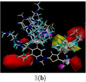 Fig. 3: Alignment of PLK1 inhibitors with contour maps (a) CoMFA (b) CoMSIA