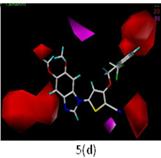 The high (mol-14) and least enthusiastic (mol-97) compounds are served as reference molecules. Large green counter located at the 6thposition of the thiophene substituted phenyl ring represents sterically favored that supports the fact that the molecules 1 to 12 are enhancing the biological activity.