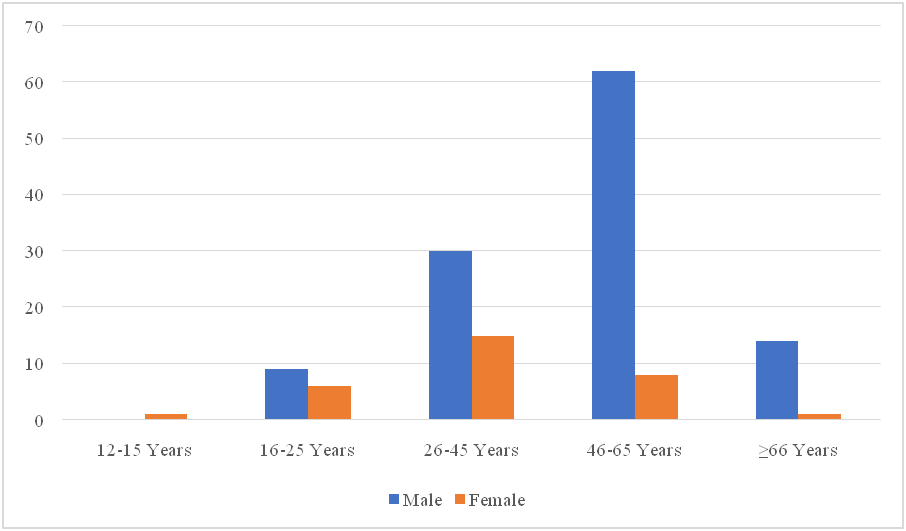 Fig. 1: Distribution of DR-TB patients according to sex and age