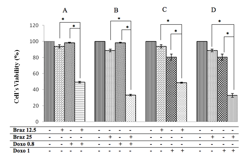 (D) Combinational treatment of brazilein 25 µM and Doxorubicin 1 µM