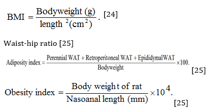 The body weights were determined once a week. Body mass index (BMI), WHR, Adiposity index, Obesity index was calculated from the formula: