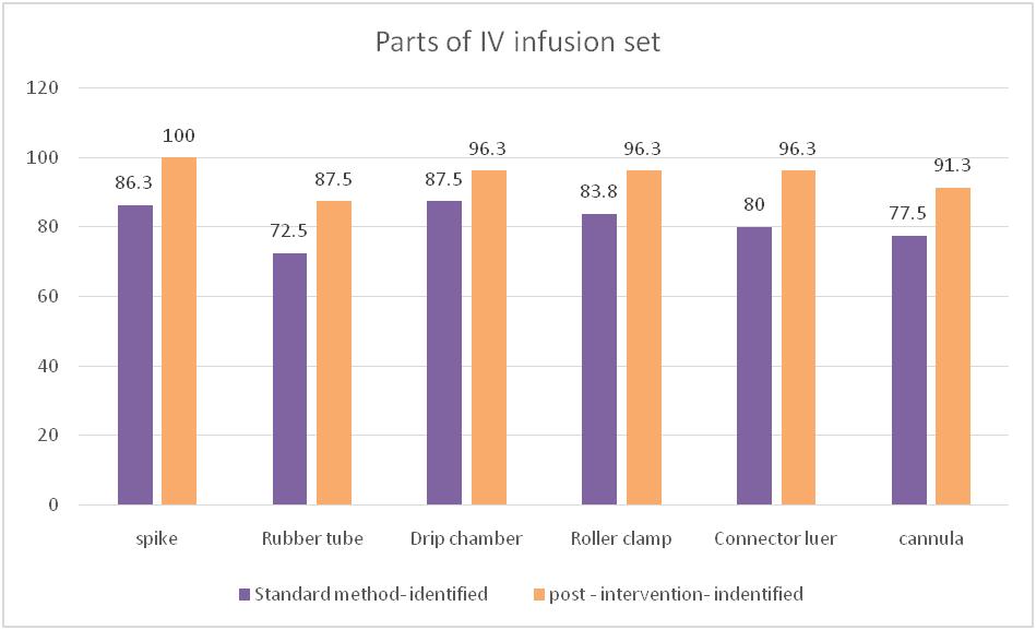 Fig. 3: Percentage of participants who could correctly identify parts of an IV infusion set