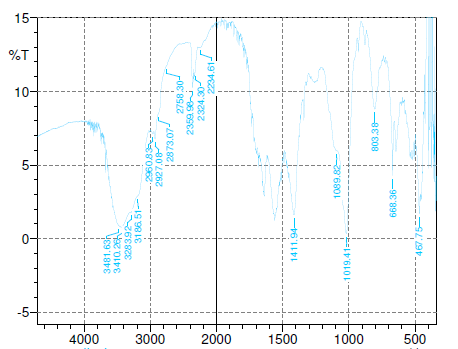 The FTIR spectra were recorded for ginger-loaded chitosan nanoparticles as well as for the physical mixture of drug and excipients using JASCO FTIR 4100 instrument in the frequency range of 400-4000 cm-1 with the resolution of 4 cm-1 [11].