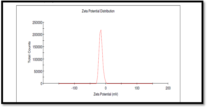 Zeta potential is a measure of surface charge (electrophoretic mobility) and it is measured by Zeta sizer (Malvern Instrument) having Zeta cells, polycarbonate cells with gold plated electrodes using water as a medium for sample preparation [14].
