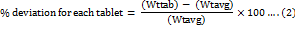 Where: Wtavg = Average weight of tablets, Wttab = Individual weight of each tablet.