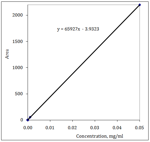 | Level | Concentration, mg/ml | Average peak area | RSD of peak areas, % (n=6) |