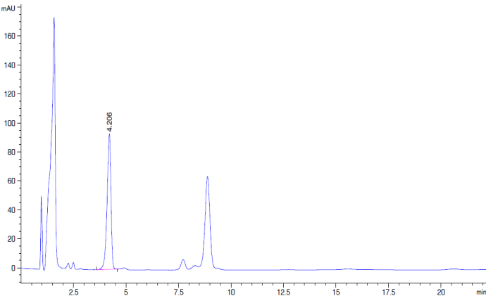 The method was developed using a Luna C18(2) 150×4.6 mm, 5 µm column with an isocratic mobile phase containing a mixture of methanol and 0.05 M monobasic potassium phosphate solution (60:40 v/v), adjusted with 0.1 M phosphoric acid solution or 1 M sodium hydroxide solution to a pH of 5.5. The mobile phase was filtered through Durapore PVDF, 0.45 µm membrane filters and degassed. The flow rate of the mobile phase was 1.5 ml/min. The column temperature was maintained at 30 °C and the eluted compound was monitored at the wavelength of 247 nm. The sample injection volume was 15 μl [9].