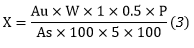 Where, Au-Peak area of mebendazole obtained from the chromatogram of swab sample solution; As-Peak area of mebendazole obtained from the chromatogram of standard solution; W–Mass of weighed mebendazole standard, mg; P-Purity of standard, % (Assay, %).