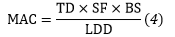 Where, MAC is the maximum allowable carryover (mg), TD is the API minimal therapeutic dose of previous product (mg), SF is a safety factor (1/1000), BS is the smallest batch size of the subsequent product (mg) and LDD is the largest daily dose of the subsequent product (mg).