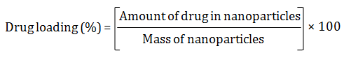 The un-entrapped drug in loaded CSNPs formulation can be separated by using centrifugation method in which a specific amount of nanoparticles dispersion is subjected to cold centrifuge (4 °C) at a specific speed 15,000 r/min for 30 min (Sigma,3-30KS, Germany). Then remove the supernatant liquid and an assay of free drug determined after certain dilution by measuring the absorbance at λ max 263 nm by using UV-spectrophotometer (Shimadzu-UV/800, Japan), followed by application in pre-determined water calibration curve equation. The EE% and drug loading calculated from the following equations: