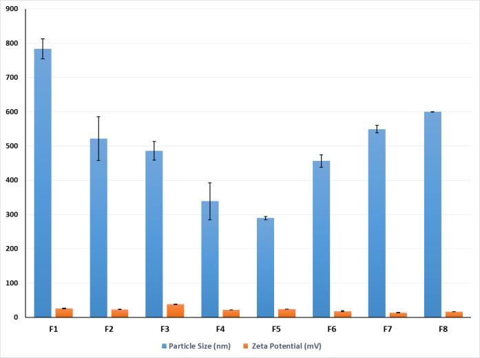 | F7 | 0.7 | 1.2 | 549.2±10.61 | 0.447±0.035 | 13.5±0.424 |