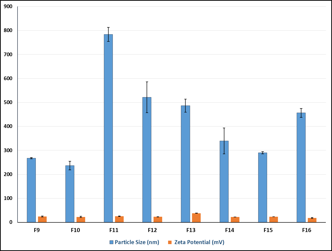 | F9 | 1.2 | 1.2 | 267.5±2.475 | 0.376±0.045 | 24.0±2.26 |
