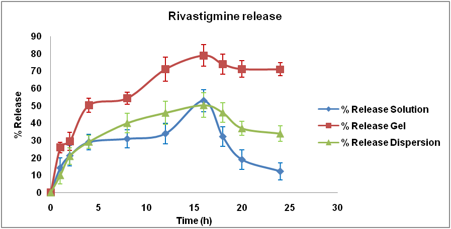 Table 3: Percent release of rivastigmine CSNPs gel formula, Nano dispersion and aqueous solution; (n=3)
