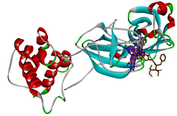 Fig. 2: Superimposition of investigational ligands without ramdesivir