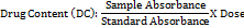 Weigh 2 ml of suspension containing 10 mg of drug and add 1 ml of ethanol and 4 ml of phosphate buffer to a 10 ml volumetric flask and sonicate until dissolved. Make up the final volume with buffer. Absorbance was measured at 408 nm [18].