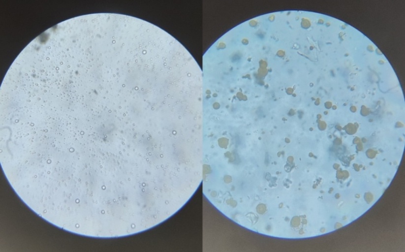 Proniosomal suspension (0.1g) was diluted with phosphate buffer pH 7.4 (10 ml) and sonicated for about 2 min. A drop was placed on a glass slide and the shape of vesicles was measured using an optical microscope at magnification powers of 10X, 45X and pictograms were recorded [13].