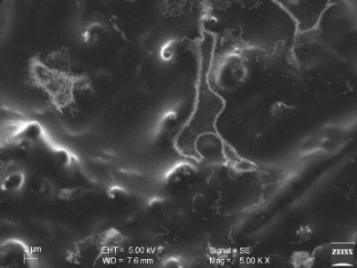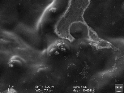 The surface morphology of proniosomes was studied by Scanning Electron Microscopy (SEM). The shape of the formulation and the sizes of the vesicles were determined by SEM. A drop of proniosomal suspension was placed on the specimen stub which was coated with carbon and then with gold vapour appeared using a Hitachi vacuum evaporator. The samples were examined under a scanning electron microscope for vesicular shape and then photographed [15].