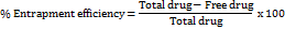 The freshly prepared nanoparticles suspension (1 ml) was centrifuged at 5000 rpm for 20 min. The supernatant was collected. The amount of unentrapped drug was determined by taking the absorbance of the ultrafiltrate UV spectrophotometrically at 211 nm after suitable dilutions with phosphate buffer pH 6.8 [7].