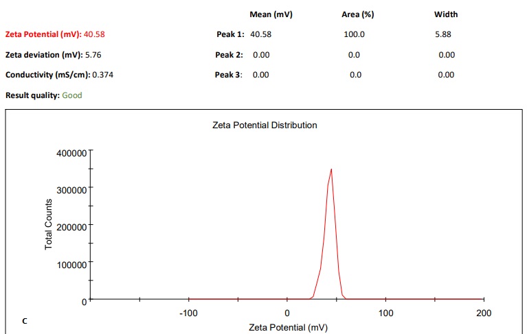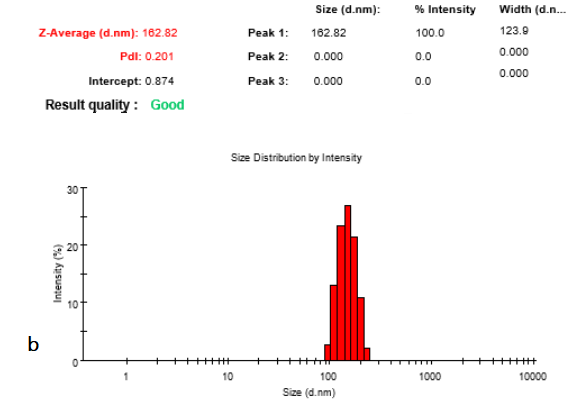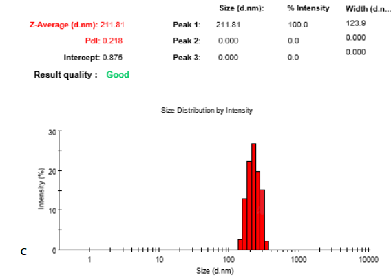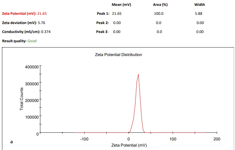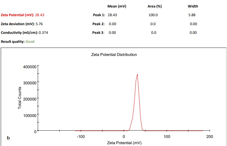 Particle size, Polydispersity index and Zeta potential were measured by dynamic laser scattering or photon correlation spectroscopy using a Malvern Zeta sizer Nano ZS (Malvern Instruments, Malvern, UK). 2 ml of the nanoparticles suspension vortexed and/or sonicated for a few minutes at 25 ° C and a scattering angle of 90 °. To determine the zeta potential, nanoparticles suspension was taken in disposable zeta cells and measured by Malvern Zeta sizer. Each sample was measured in triplicate [15].