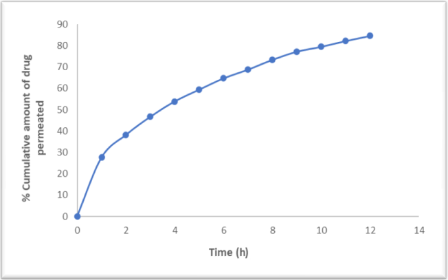 The formulation F8 showed 84.6 % permeation through the freshly obtained goat intestine within 12 h.