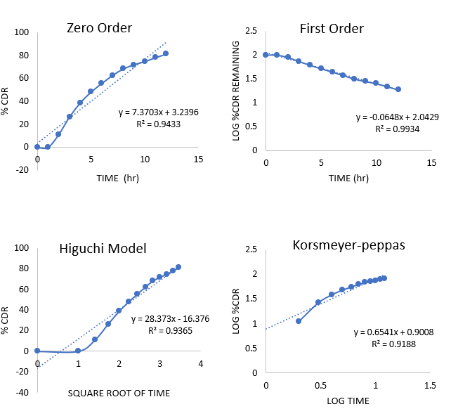 | Zero order | First order | Higuchi model | Korsmeyer peppas model |