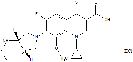 Moxifloxacin hydrochloride (MOX) is a synthetic fluoroquinolone antibiotic agent, chemically 1-Cyclopropyl-6-fluoro-1, 4-dihydro-8-methoxy-7-((4as, 7as)-octahydro-6H-pyrrolo (3, 4-b) pyridin-6-yl)-4-oxo-3-quinolinecarboxylic acid with the empirical formula C21H24FN3O4 [1]. MOX is a fourth-generation synthetic fluoroquinolone antibacterial agent. Its antibacterial spectrum includes enteric Gram-(−) rods (Escherichia coli, Proteusspecies, Klebsiella species), Haemophilus influenzae, atypical bacteria (Mycoplasma, Chlamydia, Legionella), and Streptococcus pneumoniae, and anaerobic bacteria. It differs from earlier antibacterials of the fluoroquinolone class such as levofloxacin and ciprofloxacin in having greater activity against Gram-(+) bacteria and anaerobes. Because of its potent activity against the common respiratory pathogen Streptococcus pneumoniae, it is considered a respiratory quinolone. Moxifloxacin binds DNA and forms DNA gyrase (topoisomerase II) complex and blocks further DNA replication; it also blocks topoisomerase IV interferes with the separation of interlocked replicated DNA molecules [2].