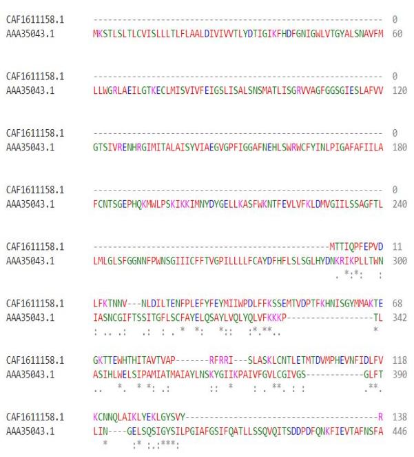 Fig. 1: Multiple sequence alignments of the target sequence with the template sequence
