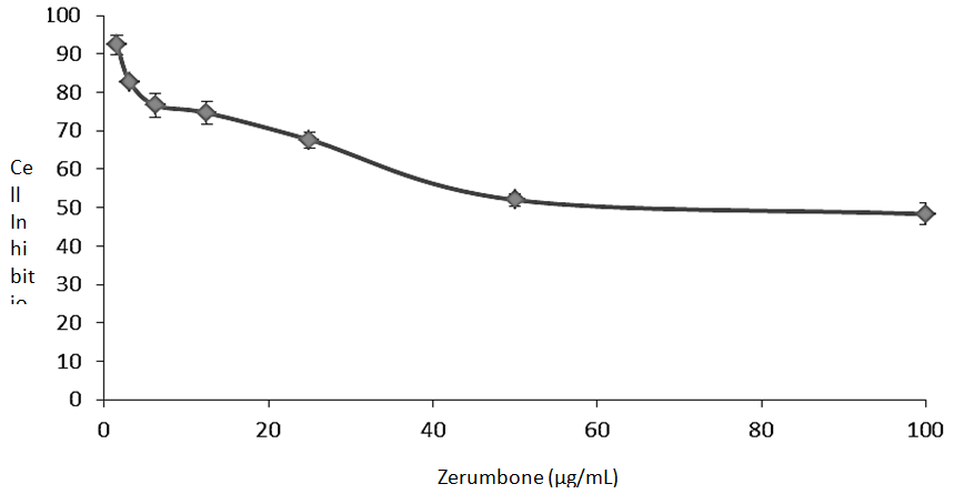 Fig. 1: Effect of ZER on on hepatocellular carcinoma (HepG2) cell line assessed by (MTT) assay