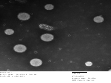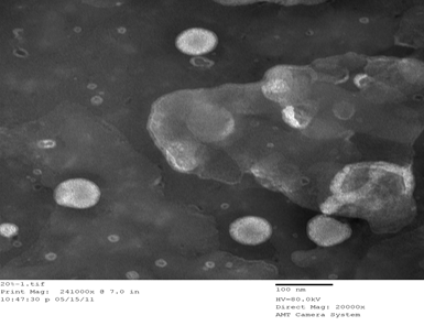 The fig. illustrated the presence of a layer enclosing the nanoparticles, whicharecharacterizedin the case of loaded SLNs. These results in full agreement with Sznitowska et al[24] as they studied the TEM of diazepam loaded SLNs and found a layer around loaded SLNs that was not apparent in unloaded ones. This is also in agreement with other results of [5, 25, 26].