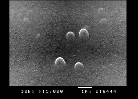 For scanning electron microscopy (SEM), dried solid lipid nanoparticles loaded with model drugs were fixed on a brass stub using double-sided adhesive tape and then made electrically conductive by coating with a thin layer of gold for 30 seconds using JEOL fine coat (JFC-1100F ion sputtering device) and scanned using JEOL (JSM-S. M 5300) using software (ORION 6.60.4).