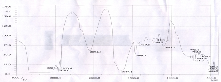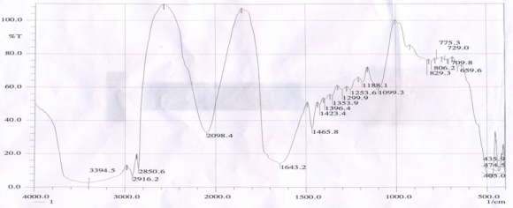 Fig. 10 showed the FTIR spectrum of GMS (lipid core and main component of SLNs). The characteristic bands of it showed C-H stretching and C-H bending at 1200-1000 cm-1 and 850- 700 cm-1[29].