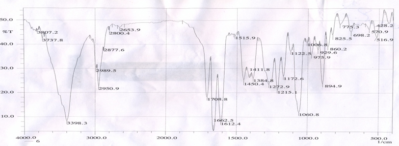Fig. (12) showed the FT-IR of ER and ER-SLNs which reveal differences in three regions(3300–3700, 2900– 3000, and 1600–1800 cm-1). The small shoulder in the region of 2900–3000 cm-1 may be due to the effect of water presented in the molecules on alkane stretching. The difference in intensities of two peaks in the region between 1600 and 1800 cm-1 suggests the difference in orientation of carbonyl groups. The absence of new bands ofER-SLNs indicated that there was no chemical reaction between the drug and lipid matrix, being only dissolved in lipid matrix of GMS. These results were in full agreement with thatobtained from Sarisuta et al, [31] who studied the FT-IR of ER loaded on differentformulations.