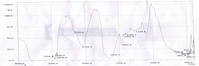 The pure drug, plain dried solid lipid nanoparticles, physical mixture and model drug loadeddried solid lipid nanoparticles were mixed for each with KBr (IR grade) in the ratio of 100: 1 and then scanned over a wave number range 4000- 500 cm-1. Measurements were carried out using Shimadzu 435 U-O4 IR spectrometer, (Japan) at the Micro-Analytical Centre ofFaculty of Science, Cairo University, Egypt).