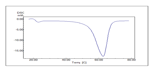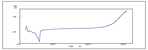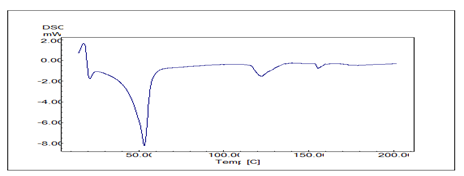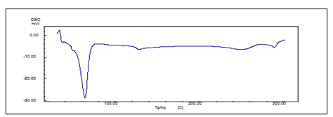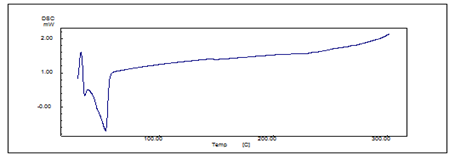 DSC thermogram of DP-SLNs was characterized by initial endothermic peak at 50 °Capproximately which is characteristic for GMS with absence of characteristic exothermicpeak of DP which may be indicative of absence drug in crystalline form and solubilisation ofdrug within lipid matrix with enhanced stability.