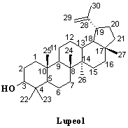 Bulus A, Ben AC, Florence DT, Oluwakanyinsola AS, Ogbaji JI. Isolation and analgesic property of lupeol from diospyros mespiliformis stem bark. J Med Plants Res. 2015 Aug 10;9(30):813-9, doi: 10.5897/JMPR2015.5877.