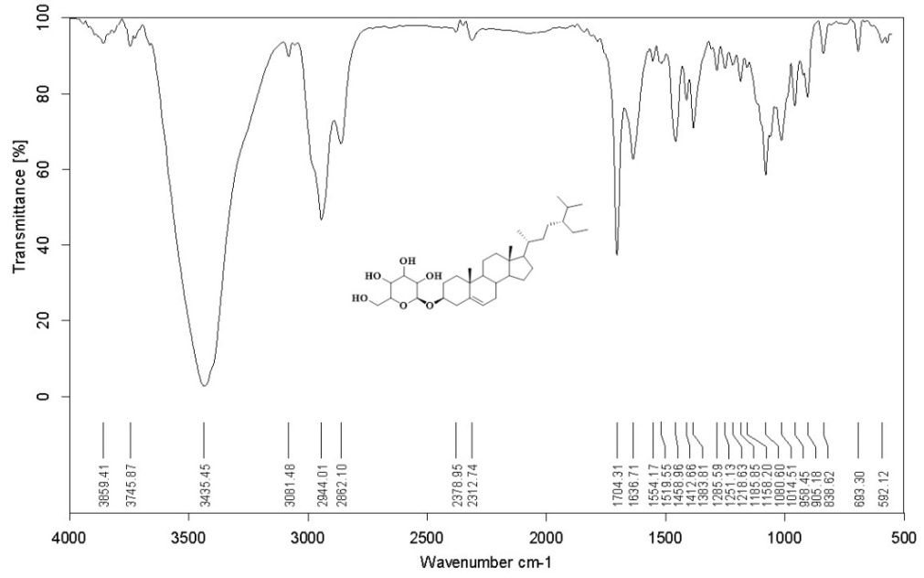 Fig. 1: FT-IR spectrum of the compound GT-01, Daucosterol
