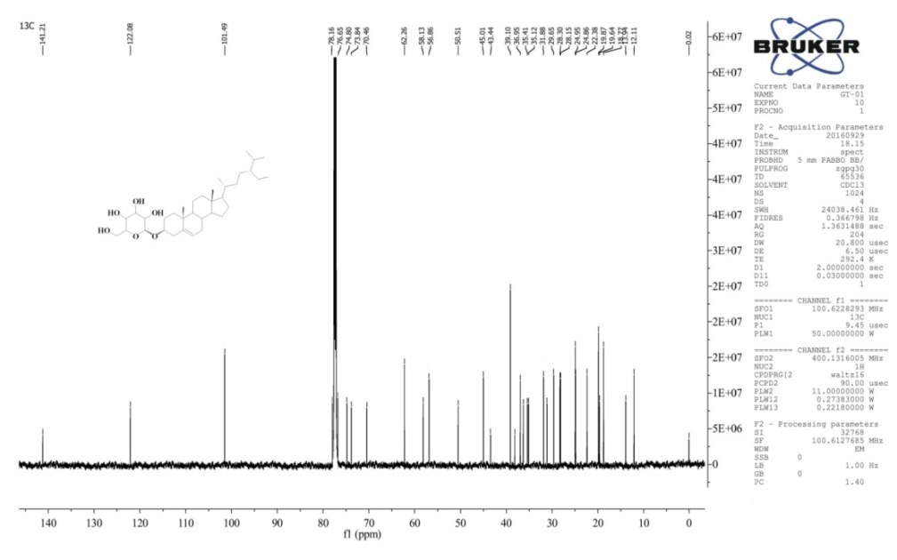 Fig. 3: 13CNMR spectrum of the compound GT-01, daucosterol
