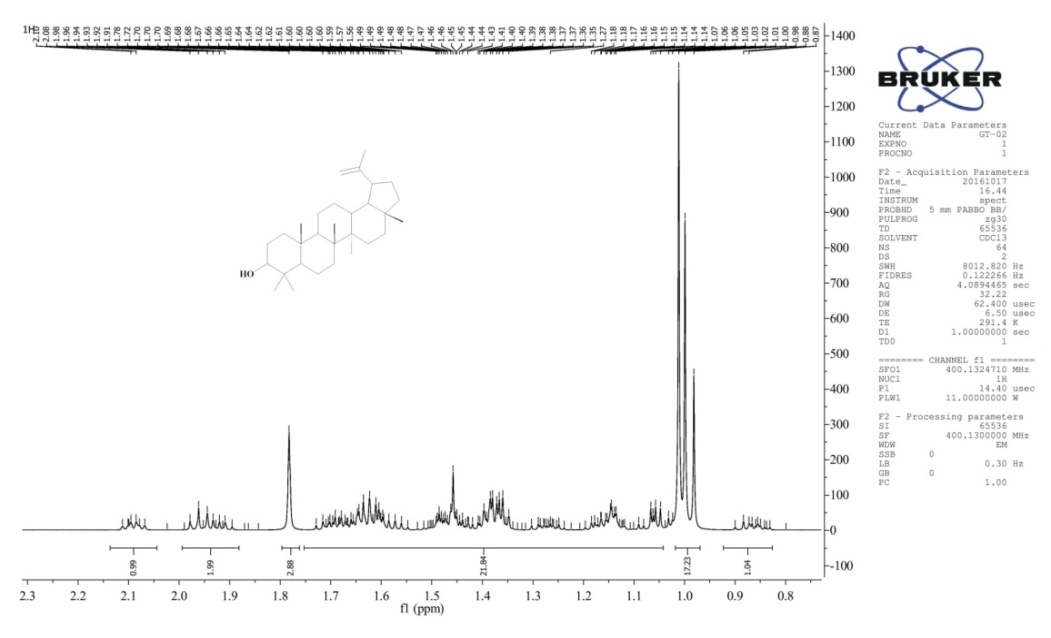 Fig. 6: 1H NMR spectrum of the compound GT-02, Lupeol