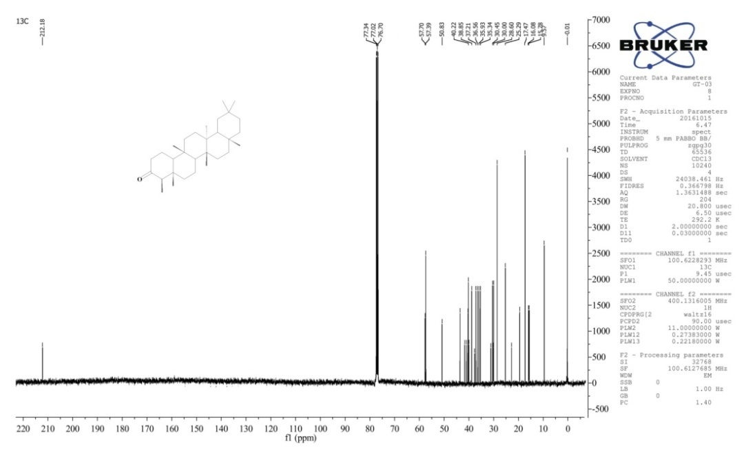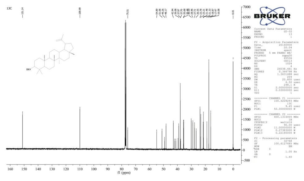 Fig. 7: 13 CNMR spectrum of the compound GT-02, Lupeol