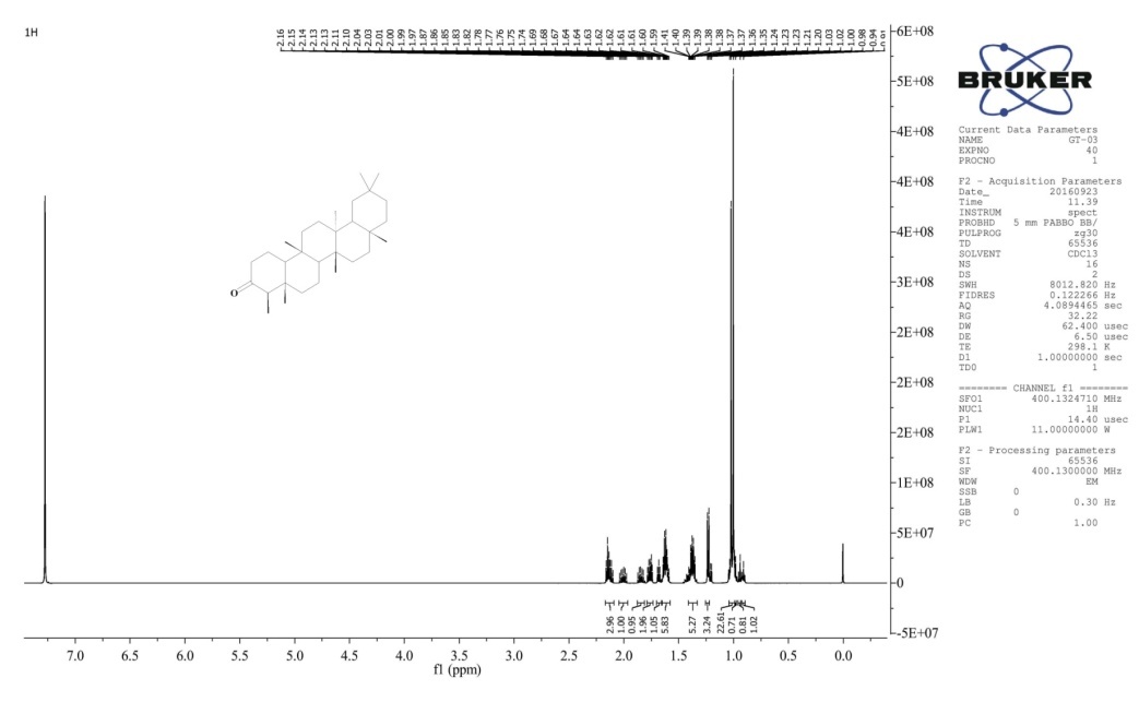 Fig. 10: 1H NMR spectrum of the compound GT-03, Friedelin