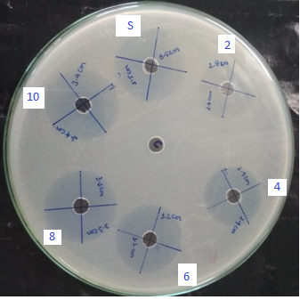 Determination of zone of inhibition by cup plate method