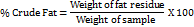 Calculation: The percent fat in the sample was calculated after weighing the fat residue, using the following expression: