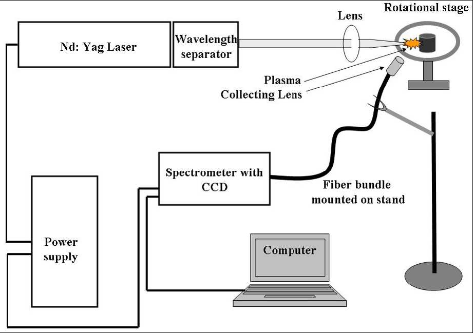 Fig. 1: Experimental setup of Laser-induced breakdown spectroscopy (LIBS) determination of mineral content and nutritional property of fruit peels