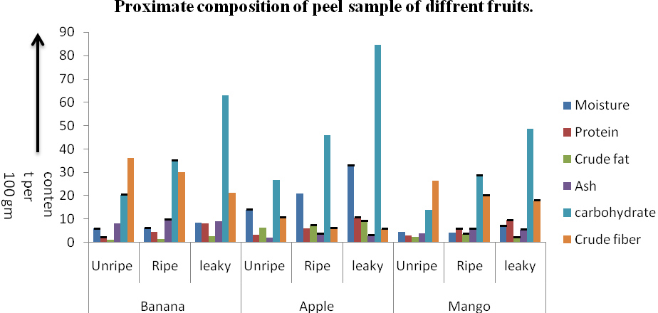 Dried peel samples of banana, mango, and apple were analyzed for moisture content, fat, crude fiber, protein, carbohydrates, total ash, and mineral content.