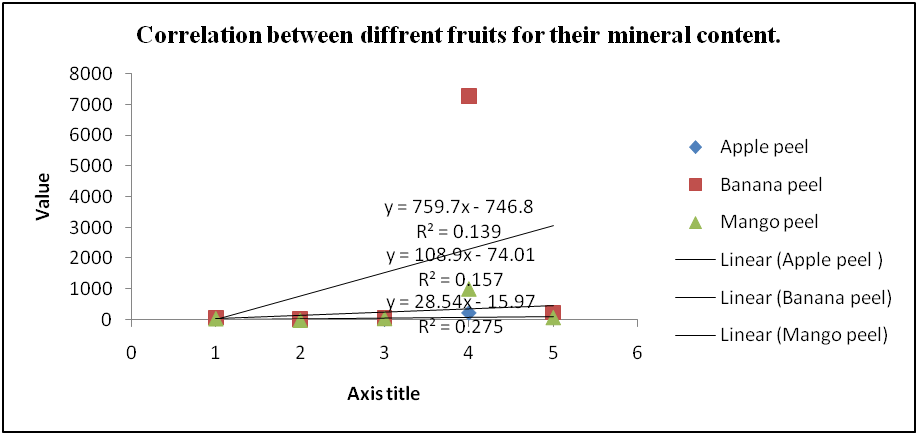 Fig. 9: Correlation between mineral content of apple, banana and mango