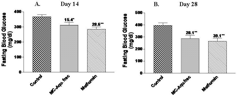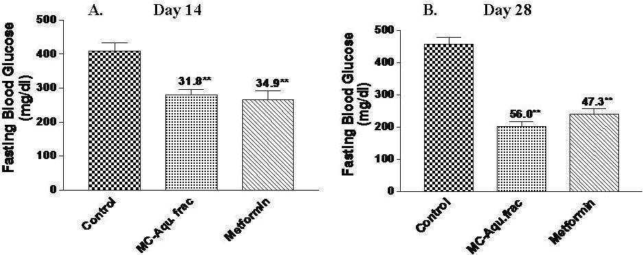 Therefore, it may be concluded that aqueous fraction of aqueous extract of M. charantia fruits is effective in controlling of diabetic hyperglycemia and dyslipidemia and other complications related to hepatic and renal functions.