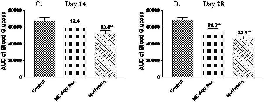 Effect of butanol and aqueous fractions of aqueous extract of M. charantia fruits on the blood glucose profile of Streptozotocin-induced diabetic rats